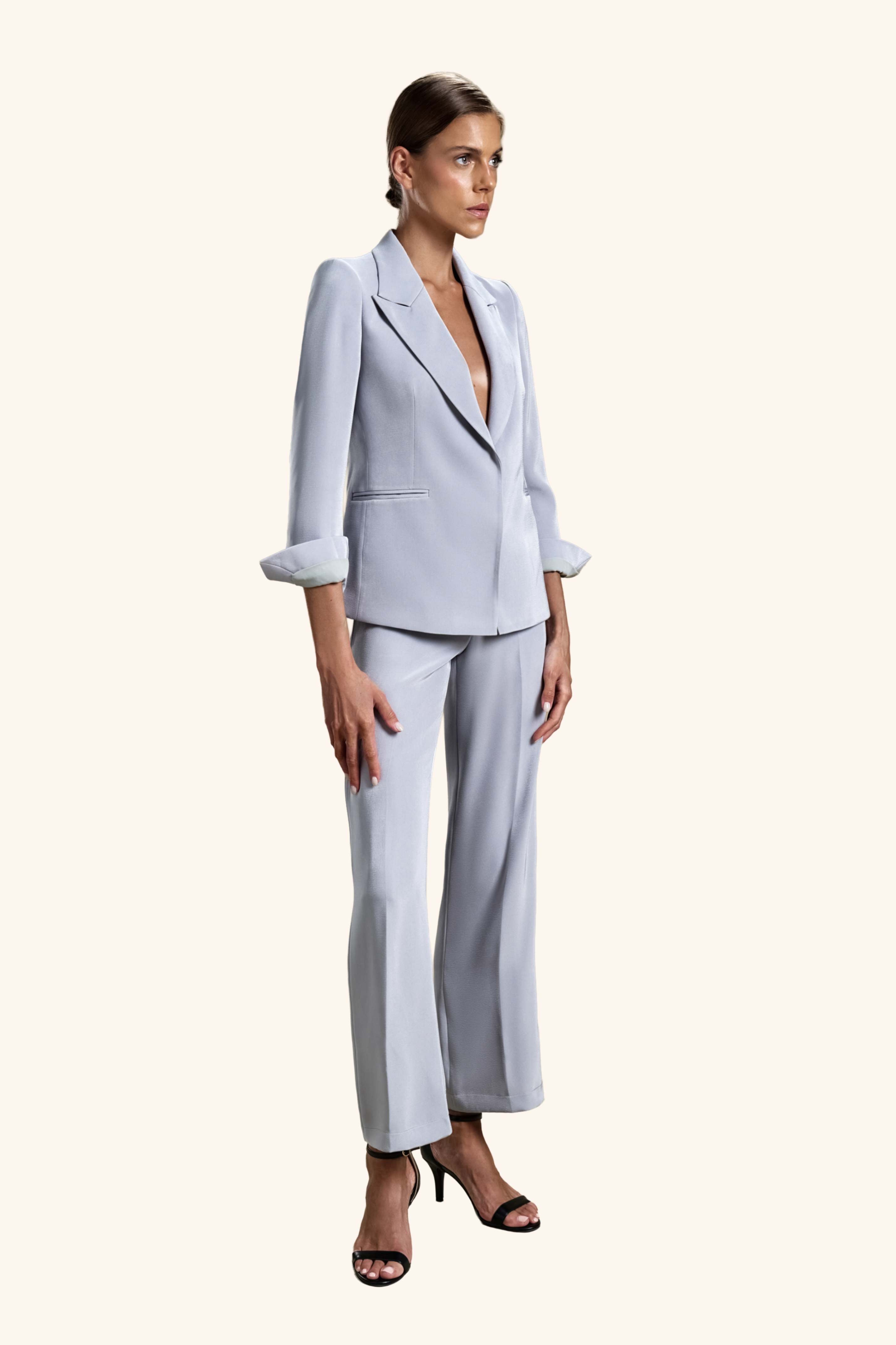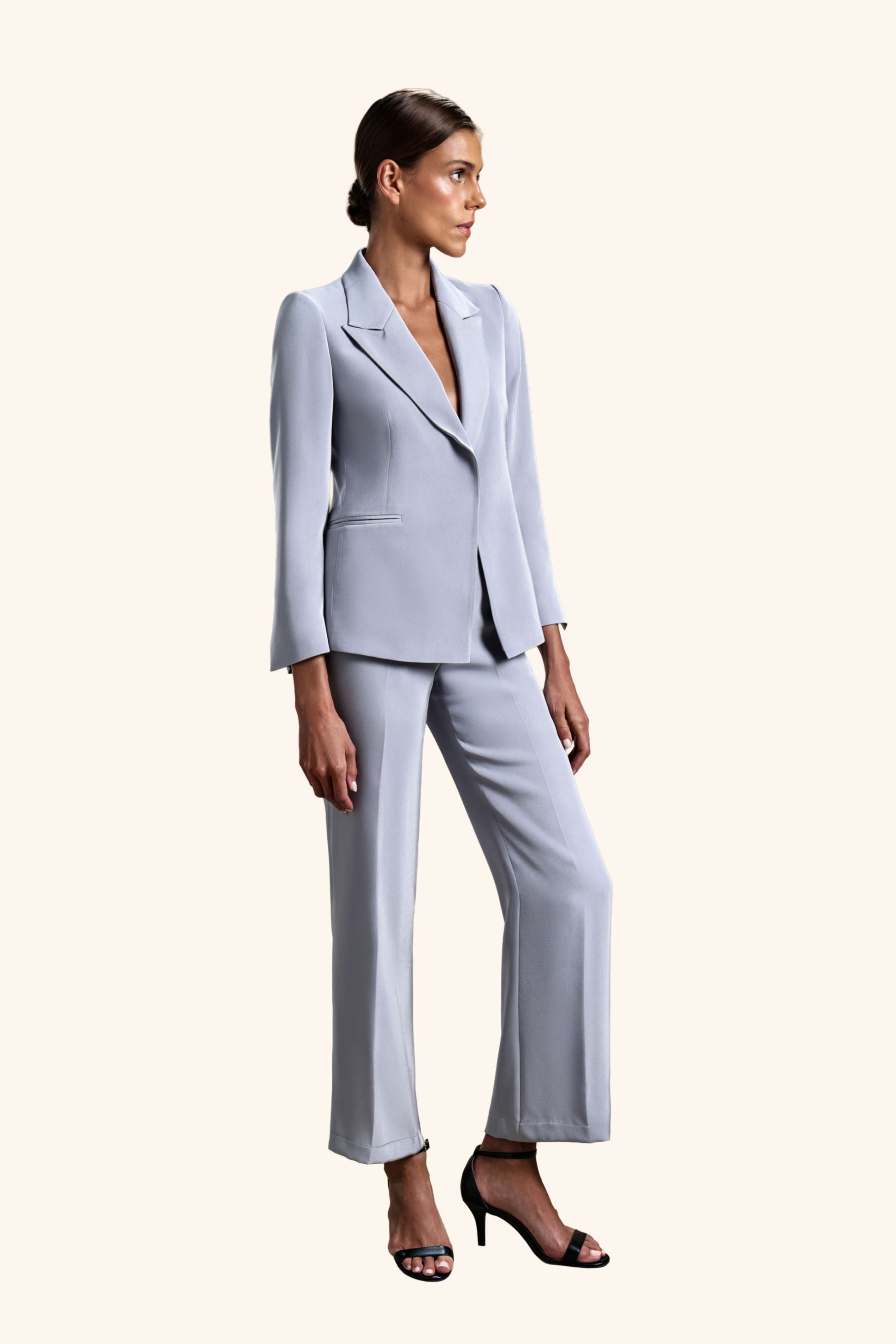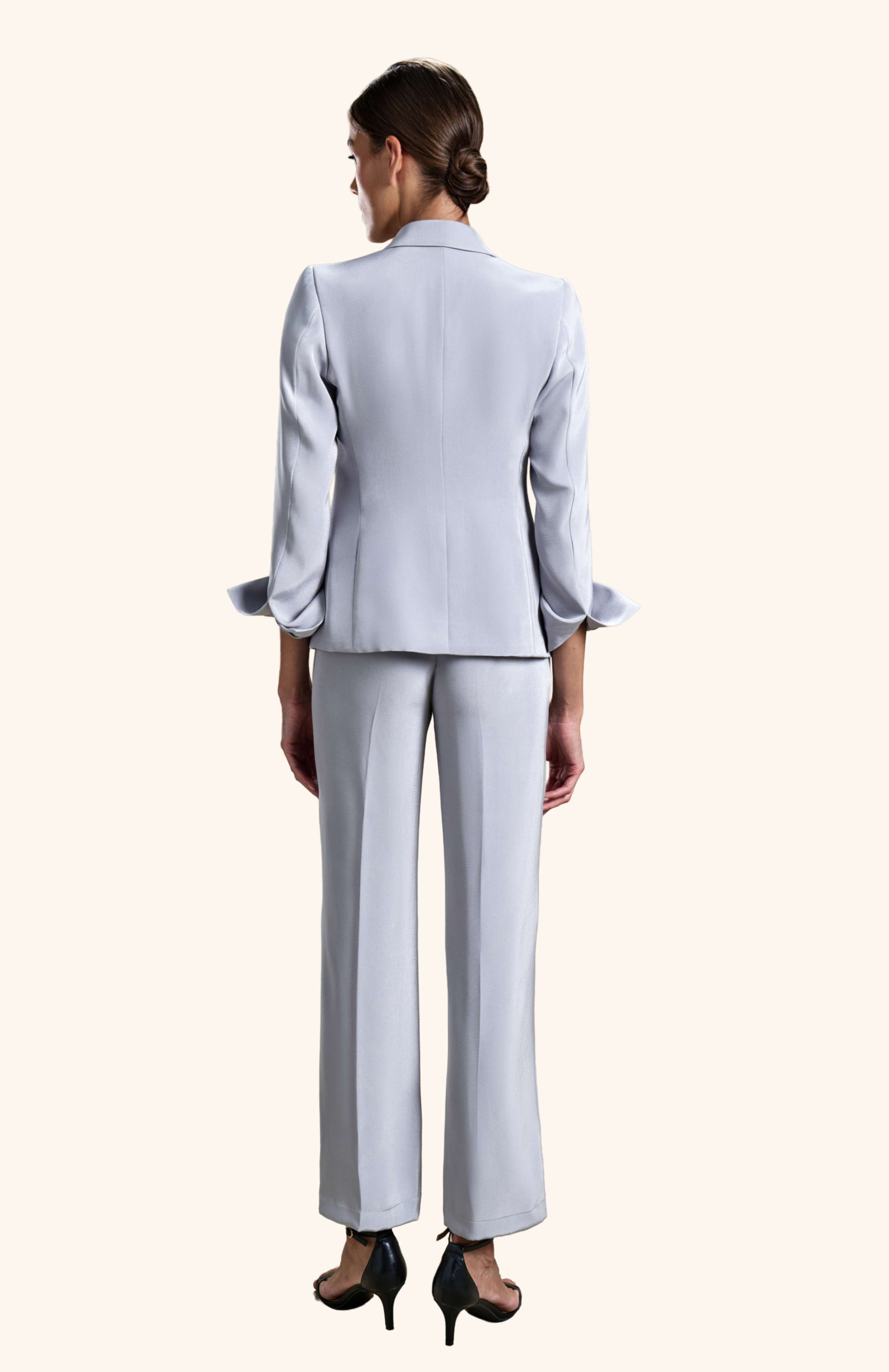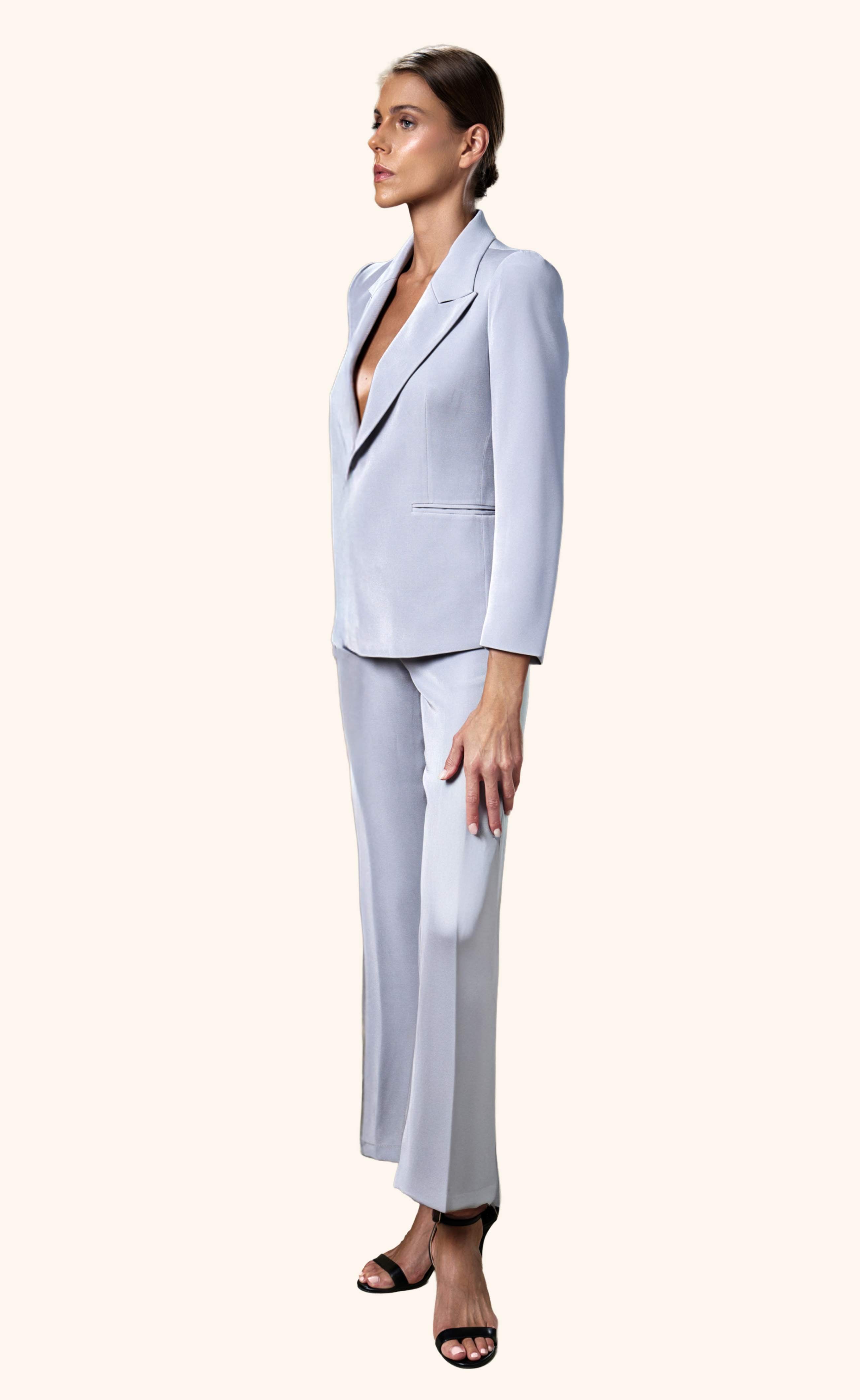 Granite Elegance from our Midnight Mirage SS2026 collection. Tailored blazer, wide-leg trousers, single-button. Crafted for executive / formal with polished tailoring.